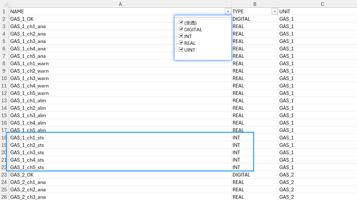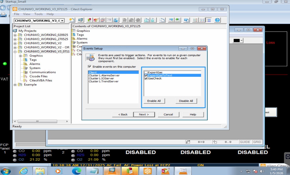 variable.dbf中确认了所有气体变量都属于Cluster1,因此后续所有的 Event 和 Server 配置都必须挂载在Cluster1下,否则找不到变量。